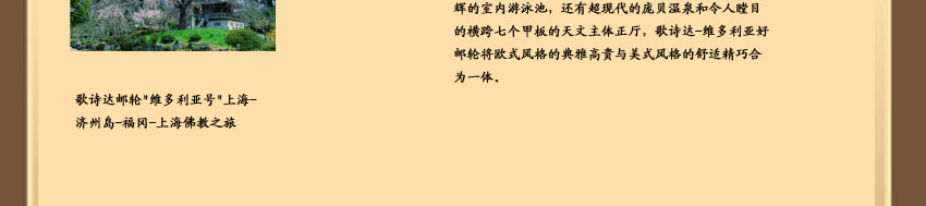 如果时间有限,又想体验一下邮轮的奢华,选择短线游就最适合不过。以丽星邮轮系列为例,双鱼星号香港( 路线 )公海2天游,周末行程,既能感受邮轮旅游的诸多服务,又可以解决香港一晚住宿。要知道,旺季香港酒店的房价基本在1000元以上,这就为大家带来了高性价比的邮轮体验机会。再如歌诗达系列的上海、韩国、日本航程,整个行程安排符合中国游客的出游习惯。另外,以马来西亚槟城、泰国普吉岛、新加坡为主要停靠点的处女星号东南亚线路,行程轻松、价格适中,又可尽享邮轮旅行的多样乐趣,这种诱惑为大众带来了对邮轮旅游无限的憧憬。