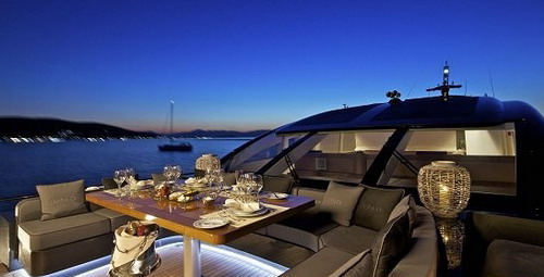 O'Pati的外部甲板是一个弓形,上面有U形的沙发和桌子,可以想象,夜晚的时候,摆上红酒点放音乐,在满天繁星下是多么舒服的享受。