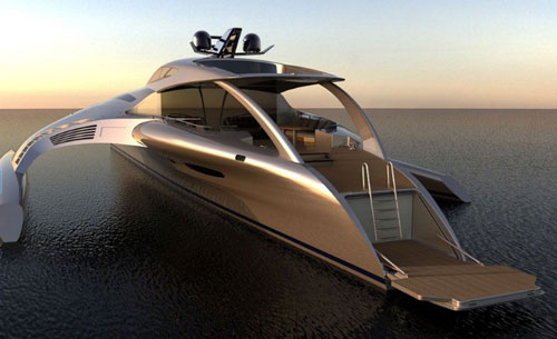 Adastra Superyacht 满身都是高科技,这艘船采用三体式结构,主船体修长,在高速航行时可以减少阻力,让这艘船航行起来的速度更快。