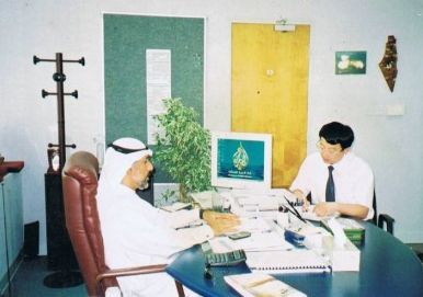 世华企俱乐部访问卡塔尔半岛电视台,图为朱伟根先生访问卡塔尔半岛电视台台长阿里先生