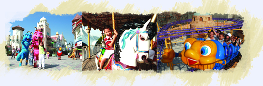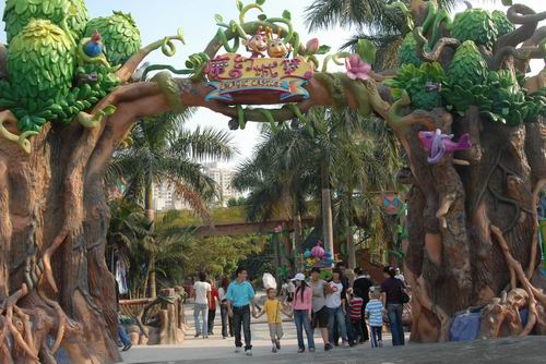 全园共分九大主题区:西班牙广场、卡通城、冒险山、欢乐岛、金矿镇、香格里拉森林、飓风湾、阳光海岸,加上独具特色的玛雅水公园,有100多个老少皆宜、丰富多彩的游乐项目。